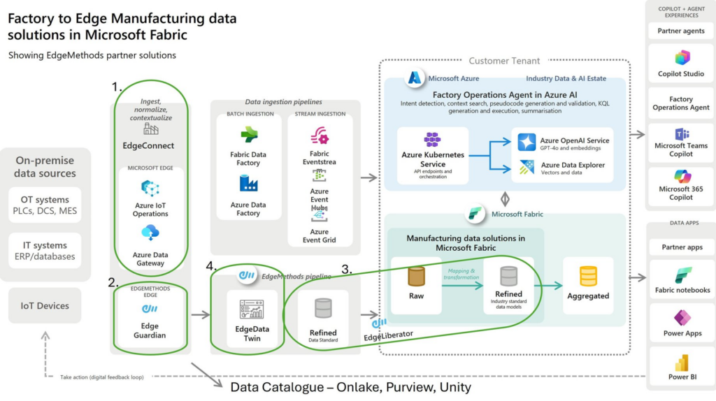 Built on Microsoft Azure and Microsoft Fabric, the EdgeMethods Data Platform provides a secure, scalable architecture for capturing data from OT, IT, and edge environments and turning it into business-ready intelligence.